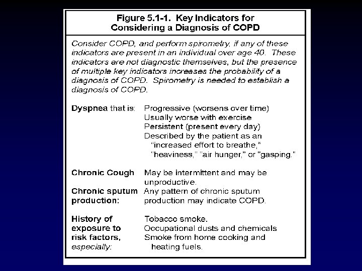 Assess and Monitor Disease: Key Points • Patients who have chronic cough and sputum production with a history of exposure to risk factors should be tested for airflow limitation, even if they do not have dyspnea.