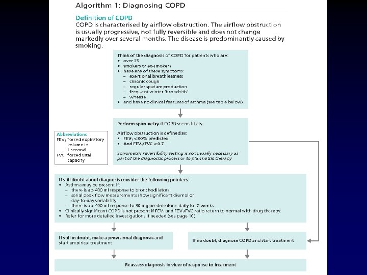 Definition of COPD • Chronic Obstructive Pulmonary Disease (COPD) is a preventable and treatable disease state characterised by airflow limitation that is not fully reversible. • The airflow limitation is usually progressive and associated with an abnormal inflammatory response of the lungs to noxious particles or gases, primarily caused by cigarette smoking.