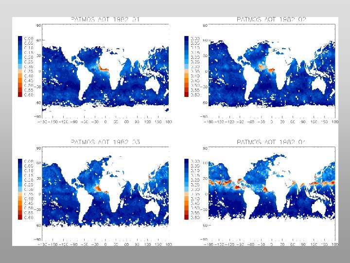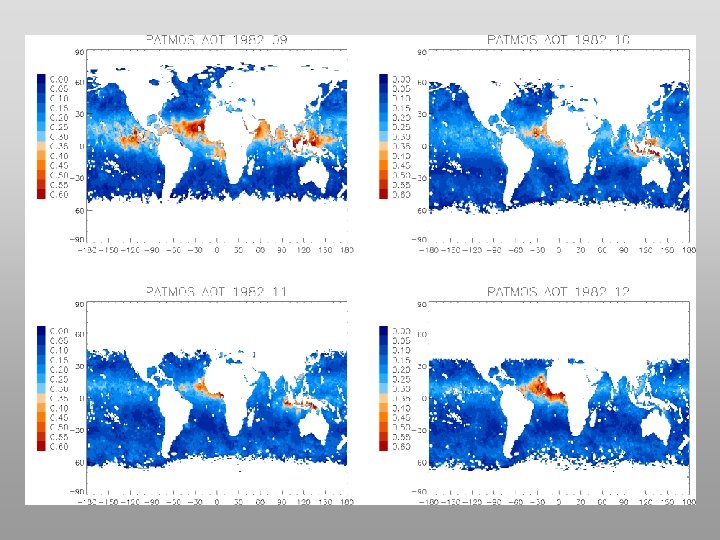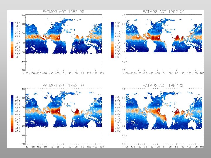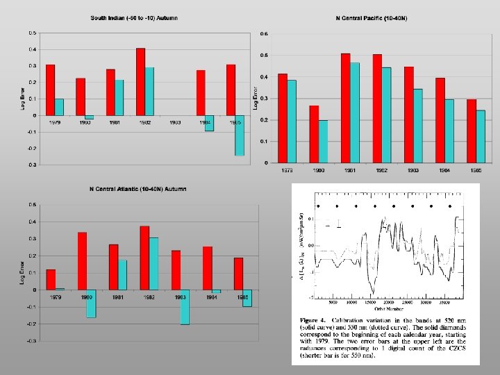 CZCS Deficiencies 1) Low SNR 2) 5 bands, only 4 of which quantitatively useful -- limits aerosol detection capability 3) Navigation 4) Polarization 5) El Chichon 6) Anomalous behavior post-1981 7) Sampling