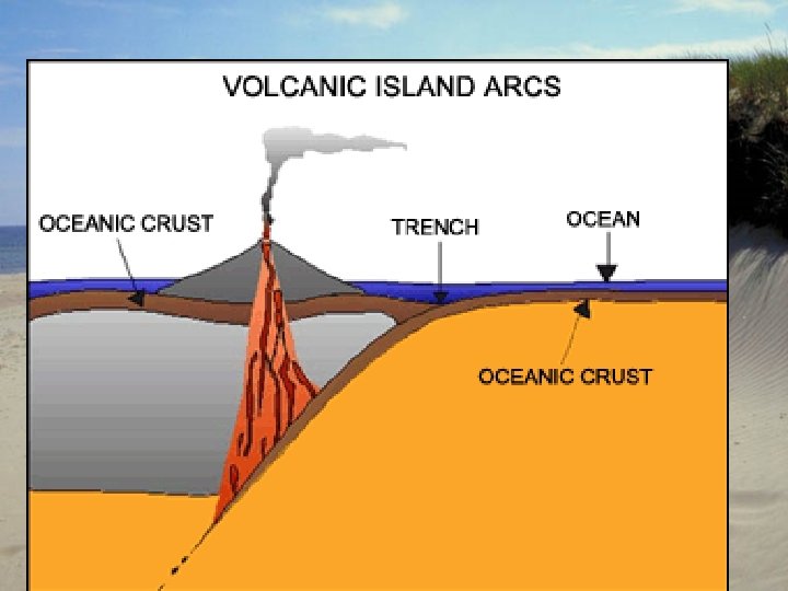 Island Arcs • Curving chains of volcanic islands • Seamounts also • Found parallel to concave edges of a trench • Aleutian islands • Marianna islands