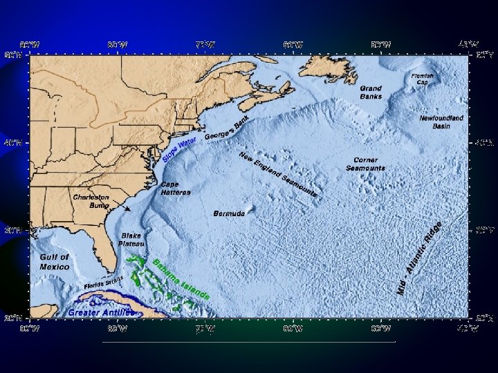Ocean Deeps Averages Pacific 14, 000 ft Atlantic 12, 900 ft Indian 12, 700 ft Southern 12, 000 ft Arctic 4, 300 ft Overall Average Depth: 2. 33 miles