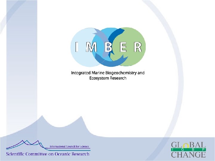 IMBER Themes and Issues Theme 1. Interactions between Biogeochemical Cycles and Marine Food Webs - Transformation of organic matter in marine food webs - Transfers of matter across ocean interfaces - End-to-end food webs and material flows (IMBER/GLOBEC) Theme 2. Sensitivity to Global Change - Impacts of climate-induced changes through physical forcing and variability - Effects of increasing anthropogenic CO 2 and changing p. H on marine biogeochemical cycles, ecosystems and their interactions (IMBER/SOLAS: Joint Implementation plan) - Effects of changing supplies of macro- and micronutrients - Impacts of harvesting of marine ressources on end-to-end food webs and biogeochemical cycles (IMBER/GLOBEC) Theme 3. Feedbacks to the Earth System - Oceanic storage of anthropogenic CO 2 - Ecosystem feedback on ocean physics and climate Theme 4: Responses of Society