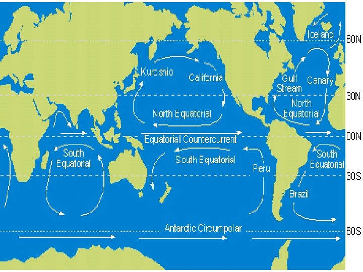 Surface Currents • Controlled by three factors –Global winds –Continental Deflections –Coriolis Effect