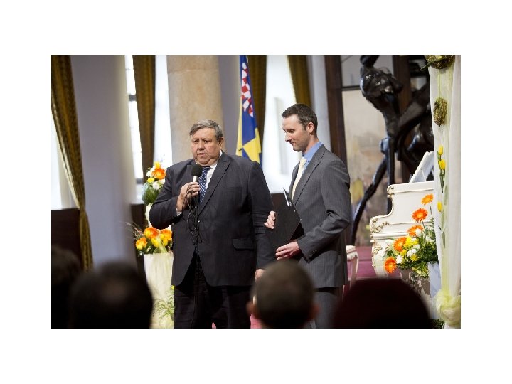 Udělení nejvyššího resortního vyznamenání - Medaile Ministerstva školství, mládeže a tělovýchovy. • Předcházelo jednání: Čtvrtek 27. března 2014 – Jednání na MŠMT ČR – Vrchní ředitel pan ing. Bannert, pan ing. Pohořelý, – – – • • • Poslání ČUŠP Rámcový vzdělávací program předškolního vzdělávání Rámcový vzdělávací program základního vzdělávání Vyhláška 48 -2005 z pohledu České unie školního plavání Financování výuky plavání MŠMT - různé Kdy, kde: Pátek 28. Března 2014 – Zlatý sál Lichtenštejnského paláce v Praze, Počet oceněných: 50 Kategorie: Medaile ministerstva školství, mládeže a tělovýchovy 2. stupně za vynikající pedagogickou činnost Předával: ministr školství, mládeže a tělovýchovy pan Chládek spolu s 1. náměstkem panem Fryčem Kdo navrhl: Rada Zlínského kraje Moderoval: tisková mluvčí MŠMT ČR