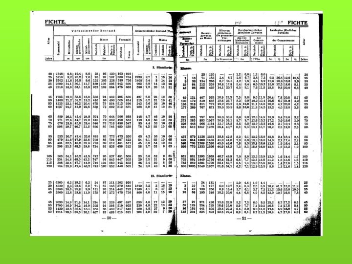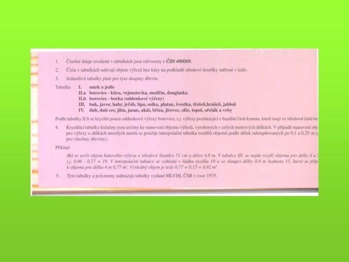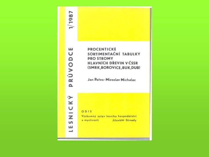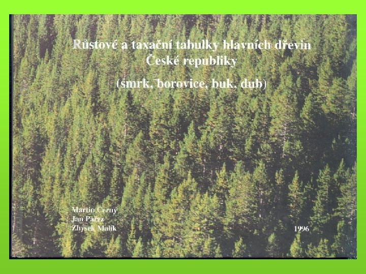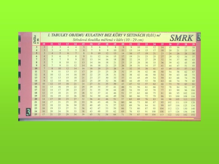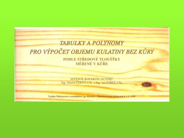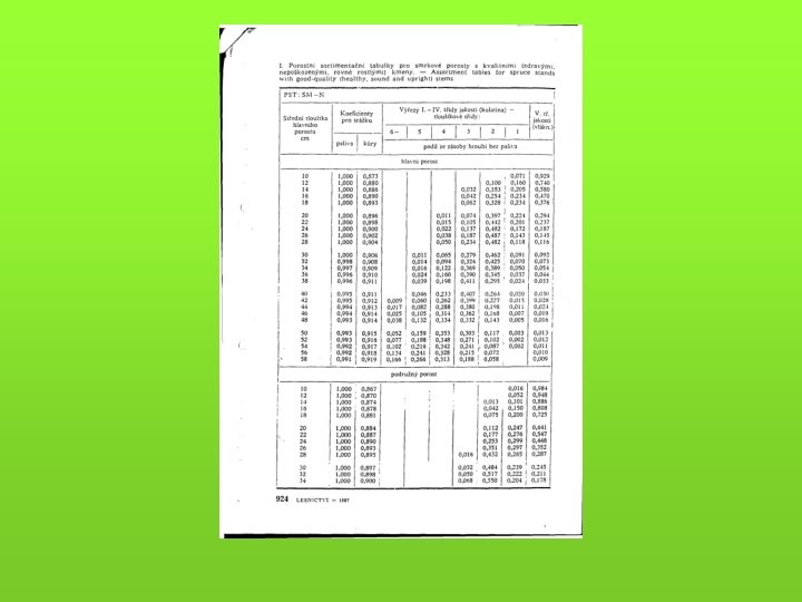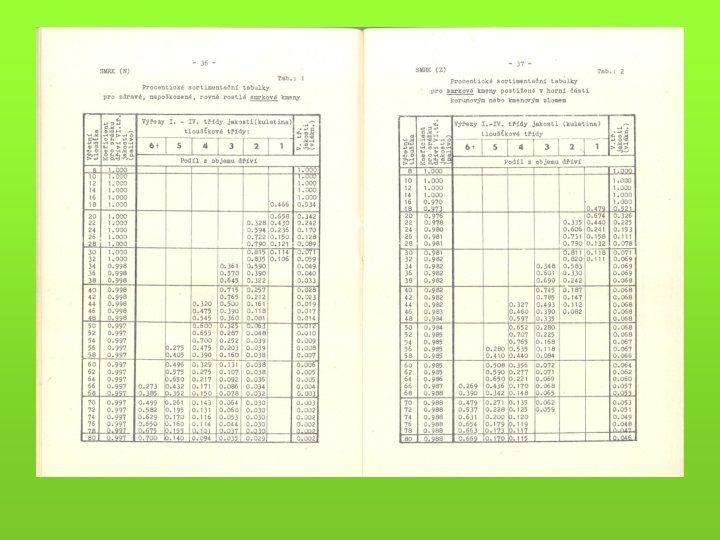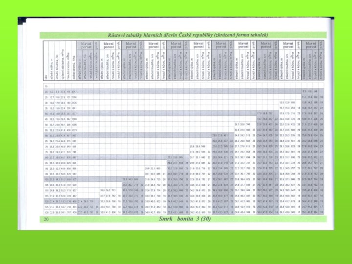 Pro modelování a konkrétní specifické ocenění - růstové a taxační tabulky (objem porostní zásoby) - hmotové tabulky (výpočet hmoty jednotlivých stromů a celých porostů) - sortimentační tabulky - krychlící (kubírovací) tabulky (např. tabulky a polynomy pro výpočet objemu kulatiny b. k. podle středové tloušťky měřené v kůře) - pařezové tabulky (korelace tloušťka na pařezu a ve výčetní tloušťce)