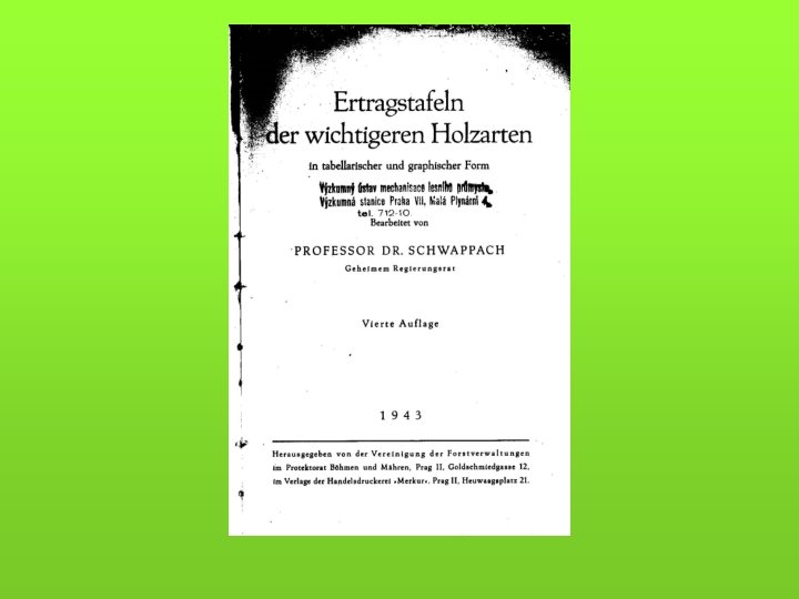 Lesní úroková míra-3 • Max Endres (1923) – na základě nauky čistého výnosu z lesa „uzavřený systém“ • Jako základní pilíř je uvažováno s „objektivní všeobecnou úrokovou mírou“ = průměrné procento zúročení, které poskytuje dopravně zpřístupněný lesní podnik spravovaný podle soukromohospodářských zásad, bez jakýchkoliv právních či hospodářských omezení • Lesní úroková míra tehdy v Německu stanovena pod míru v zemi obvyklou, a to na 3 % z těchto zvláštních důvodů:
