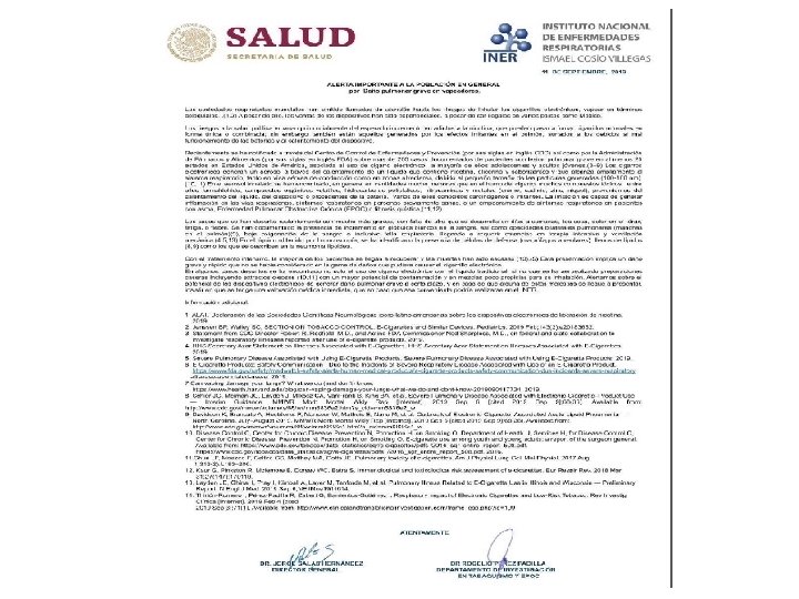 Diez principales causas de atención en la Unidad de Urgencias Respiratorias 2013 - 2018 Causa 2013 2014 2015 2016 2017 2018 Asma 3, 831 3, 446 3, 292 3, 384 2, 957 2, 944 Influenza (gripe) y neumonías 1, 212 2, 320 1, 708 2, 054 1, 886 1, 660 Infecciones agudas altas: faringitis, sinusitis y amigdalitis 3, 529 2, 146 2, 098 1, 443 1, 072 604 Bronquitis, enfisema y EPOC 1, 246 1, 102 927 850 830 889 Enfermedades intersticiales 594 528 481 672 738 833 Tumores malignos 422 409 446 572 534 604 286 448 509 480 324 Enfermedades del oído y de la apófisis mastoides Enfermedades pleurales 473 434 436 506 660 555 Otras enfermedades del sistema respiratorio 472 453 387 476 422 Tuberculosis, secuelas de tuberculosis y micobacteriosis 259 296 298 Principales causas 11, 779 11, 124 10, 223 10, 725 9, 947 9, 133 Todas las demás 4, 550 4, 214 3, 866 3, 869 3, 942 3, 803 Total 16, 329 15, 338 14, 089 14, 594 13, 889 12, 936 Fuente: Dirección Médica-INER
