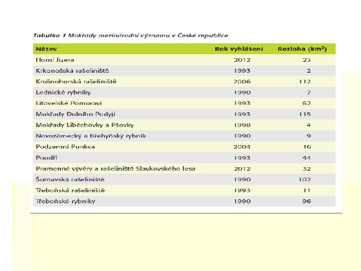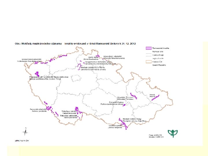 Mezinárodně významné mokřady (Ramsarská úmluva) § 14 lokalit z ČR, rozloha: § 3 rozdílné soubory vzhledem k převažujícímu charakteru mokřadu: rašeliniště rybniční soustavy mokřady vázané na nivní polohy podél říčních toků