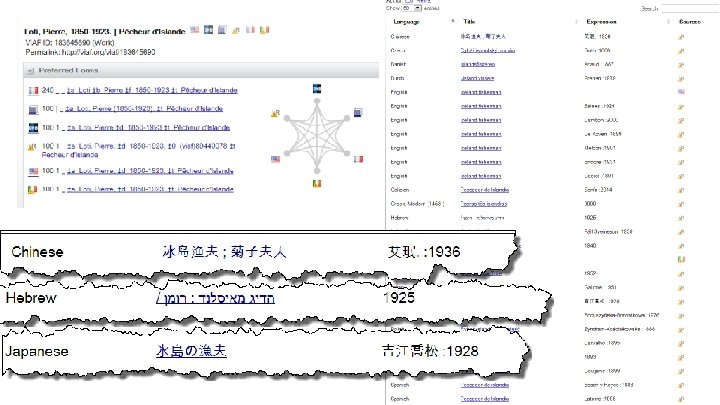 Through global cooperation… • World. Cat has more translations than any other resource. • We can tag data elements from different languages of cataloging. • We can ingest data from other linked data sources to present information in the preferred language and script of the user.