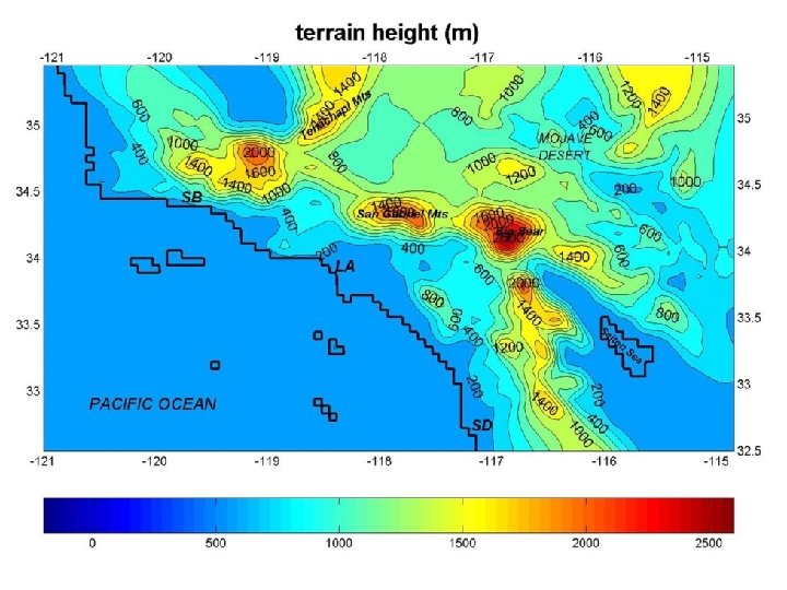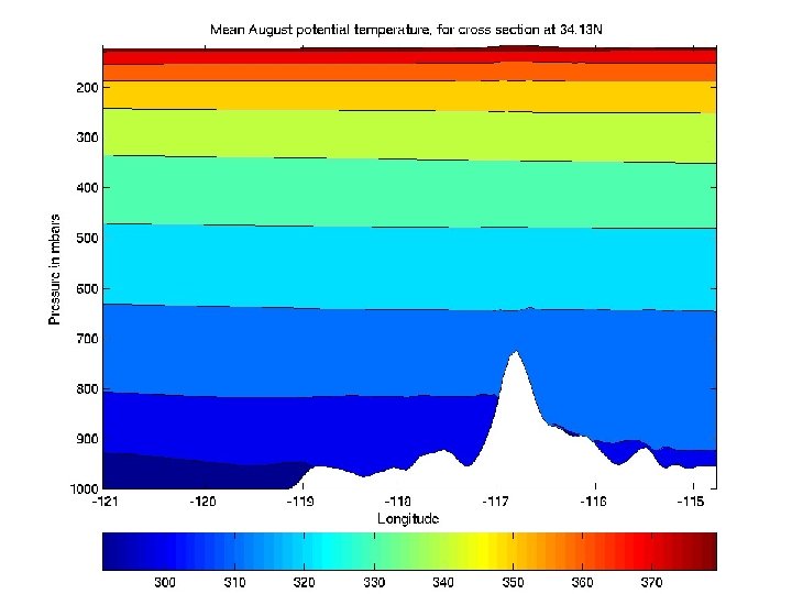 increasing potential temperature WARM COLD The S. California atmosphere is usually highly stratified. CONVERGING COLD AIR During the daytime, upslope winds bring cold air to the highest elevations, reducing daily maximum temperature.