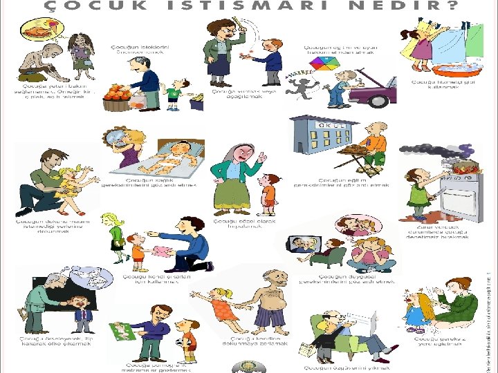ÇOCUK İSTİSMARI VE İHMALİ ü ü ü Dünya Sağlık Örgütü: , 0 -18 yaş grubundaki Çocuğun Sağlığını, Fiziksel gelişimini, Psiko-sosyal gelişimini olumsuz etkileyen; Bir yetişkin, toplum yada devlet tarafından bilerek veya bilmeyerek çocuğa karşı gerçekleştirilen her türlü harekete maruz kalması çocuk istismarı ve ihmaldır.