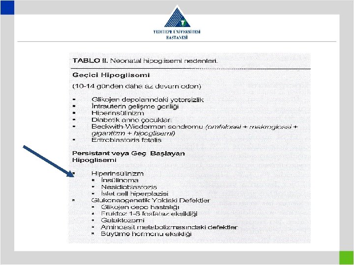 METABOLİZMA Artan bazal enerji gereksinimi nedeniyle çok dinamiktir. Karaciğerin glikojen depoları yetersiz ve glikoneogenezis tam gelişmemiştir. Kan glikoz düzeyi miadında yeni doğanda 50 mg/dl ve prematürelerde 20 -40 mg/dl altında hipoglisemi kabul edilmelidir. Hipoglisemik bebekte konvülziyon, huzursuzluk, emmeme, apne görülür