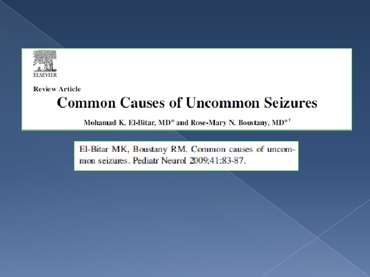 Semptomatik etiyoloji � Metabolik bozukluklar v Hiponatremi v Hipoglisemi v Hiperglisemi Hiper v Hipokalsemi � Akut nörolojik olaylar v Travma v İnme v Menenjit v İlaç kullanımı ile ilişkili