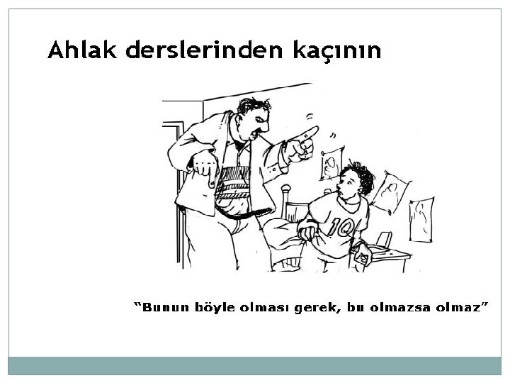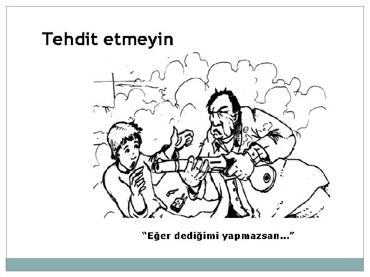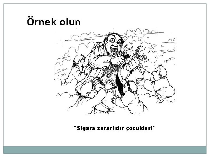 �İçerken yakalarsanız zarar vermeyin, sadece elindekini alın. �Eğer siz içiyorsanız siz de bırakın. Dediğimi yap, yaptığımı yapma asla işe yaramaz. �Sigara ile ilgili ev içi kurallara siz de uyun. �Çocuğunuzda nasihat dilini kullanmadan düzenli olarak sigaranın etkileri hakkında konuşun. �UNUTMAYIN! Bir defalık konuşma işe yaramaz, kararlı ve tutarlı olun.