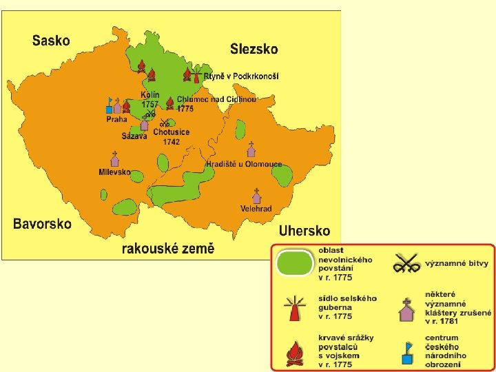 1781 zrušení nevolnictví • Josefův patent s největším dopadem na obyvatelstvo i budoucí historický vývoj • Poddanství a robota zůstaly zachovány, ale poddaní měli právo volného pohybu, vybírat si povolání, uzavírat sňatky, studovat apod. • Důsledek: příliv českého venkovského obyvatelstva do poněmčených měst- to vedlo k rozvoji průmyslové revoluce a národnímu obrození