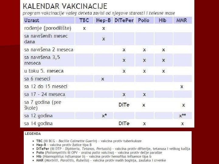 IMUNITET aktivan prirodni vještački pasivan Stvaranje antitela nakon preležane bolesti (boginje, zauške). Organizam je tada trajno ili privremeno ‘otporan ‘ na tu bolest. Pri ponovnom kontaktu sa istim antigenom, sprečava se pojava bolesti. Beba dobija antitela od majke za vreme trudnoće ili preko mleka. Vakcinacija. Organizam se podstiče da stvara anatitela (odbrambene belančevine). Vakcine ne mogu da izazovu bolest, ali podstiču stvaranje antitela. Davanje gotovih antitelaserum. Daju se osobi koja je već obolela.