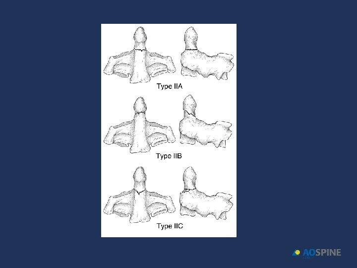 ODONTOID FRACTURES • TYPE OF FRACTURES • C 1 -C 2 DISPLACEMENT • ANGLE FRACTURE LINE- BODY OF C 2 • TRANSVERSE LIGAMENT INTEGRITY • AGE