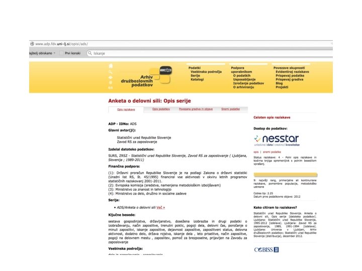 Raziskovalni podatki na RI INZ SI-DIH iskalnik arhivi muzeji SIDIH-SI (RI INZ( knjižnice digitalna knjižnica popisi prebivalstva indeks citiranosti smrtne žrtve sejni zapiski politični programi. . .