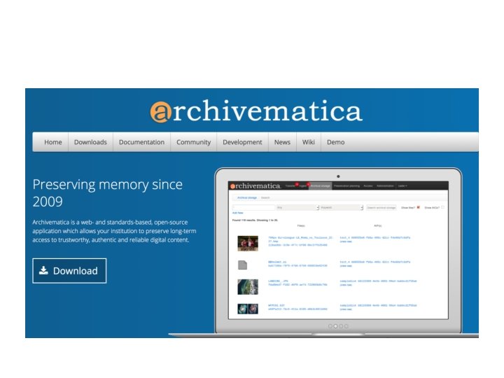 Data Seal of Approval 16 pogojev za izgradnjo modernega arhiva raziskovalnih podatkov, ki izhajajo iz iz petih splošnih kriterijev: • podatki se nahajajo na internetu; • podatki so dostopni (jasno določene avtorske pravice in licence); • podatki so v formatih primernih za (nadaljno) uporabo; • podatki so zanesljivi; • podatki imajo unikatno identifikacijsko oznako, na katero se je mogoče sklicevati pri citiranju.