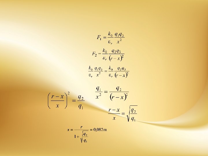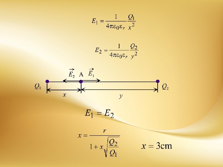 Dva pozitivna naelektrisanja q 1=1, 67 n. C i q 2=3, 33 n. C nalaze se na međusobnom rastojanju r=0, 2 m. U koju tačku, na pravoj koja spaja ta naelektrisanja, treba postaviti treće, negativno naelektrisanje q 3=-0, 67 n. C da bi se ono nalazilo u ravnoteži sa prethodna dva naelektrisanja? Mase naelektrisanih tela zanemariti.