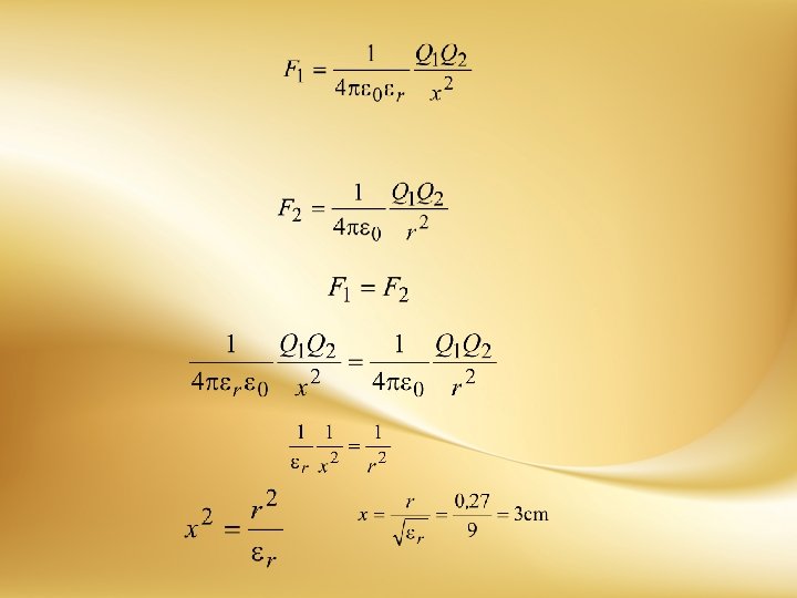 Koliko je rastojanje na kome treba da se nalaze dva naelektrisana tela u vodi ( r=81), da bi sila koja između njih deluje bila ista kao u vakuumu na rastojanju r=27 cm.