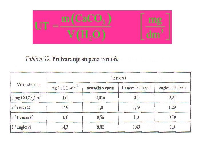 Stepen tvrdoće je različit u raznim državama: 1 o nemački = 1 o N = 10 mg Ca. O/ dm 3 vode. 1 o francuski = 1 o F =10 mg Ca. CO 3/ dm 3 vode. 1 o engleski =1 o. E =10 mg Ca. CO 3/ 0, 7 dm 3 vode.