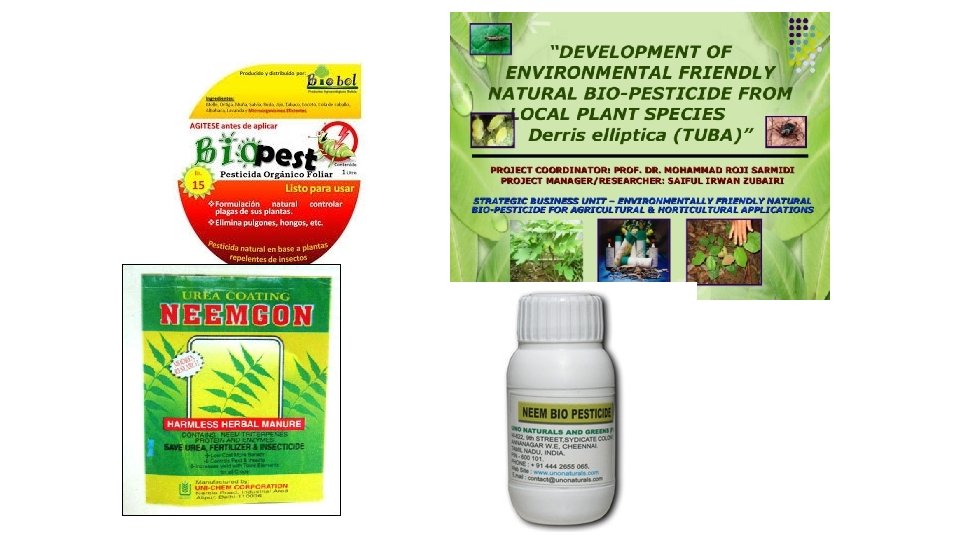 Biopestcidi - Bacillus thuringiensis (Bt) • Na tržištu već duže vrijeme imaju dozvolu bioinsekticidi na osnovi bakterije Bacillus thuringiensis (Bt). • Jedno od takvih sredstava je BIOBIT WP koji je selektivni biološki insekticid za suzbijanje gusjenica štetnih insekata u poljoprivredi (maslinov moljac, dudovac, kupusni bijelac, žuti i sivi grožđani moljac, jabučni savijač). • Aktivna tvar Biobita WP je Bacillus thuringiensis var. berliner subsp. kurstaki. Do ugibanja dolazi za 3 -7 dana, a potpun učinak pojavljuje se 14 -28 dana nakon prskanja. BIOBIT ima najbolje djelovanje ako se koristi na mlade razvojne oblike larvi, zato ga je najbolje primijeniti u L 1 i L 2 fenofazi larvi. • NOVODOR 3% je biološki insekticid za suzbijanje larvi krompirove zlatice, žilogriza i ostalih kornjaša. Aktivna tvar je Bacillus thuringiensis var. berliner subsp. tenebrionis.