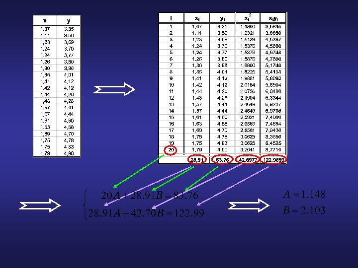 Izravnavanje numeričnih podatkov Naloga: iz tabele numeričnih podatkov (xi, yi) določi funkcijsko zvezo y=f(x), ki se s temi podatki najbolje ujema. Primer: v tabeli so podane vrednosti količine y v odvisnosti od x. Določi ustrezno funkcijsko zvezo y=f(x). Oceni vrednost y pri x =1. 5 (interpolacija) in pri x=2 (ekstrapolacija).
