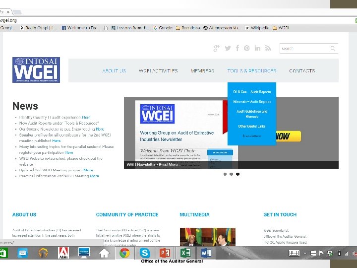 Strategy long term • Networking • Evaluate need for new design of WGEI web • Training, research and development • Facilitate development of new material • Initiate thematic trainings and workshops • Commission research and evaluations • Outreach • Distributing (by different means) information on SAIs role in good governance