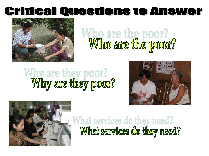 Labanan ang Kahirapan! OUR COMMON CHALLENGES • Build capacities and enhance skills of poor and key stakeholders, to sustainably develop/manage resources • Strengthen and expand partnerships expand networks