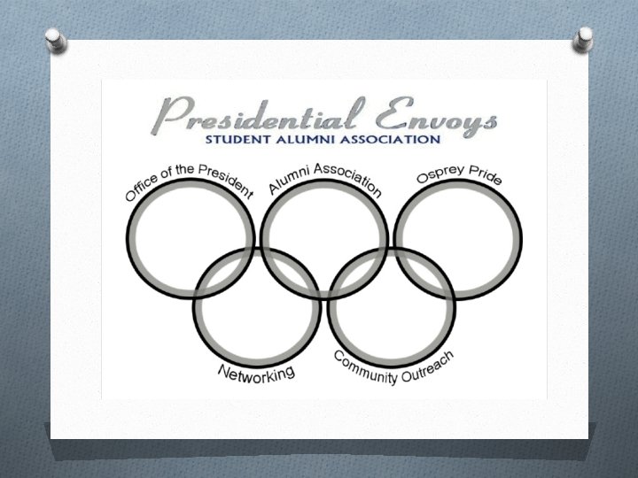 Alumni Association O Presidential Envoys Student Alumni Association O Support relations between students and alumni O Provide services to students utilizing resources of alumni and the Alumni Association O Grow student involvement with the Alumni Association