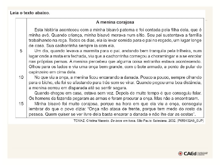 Seape 2013 Oficina de Apropriação de Resultados de LÍNGUA PORTUGUESA por Lara Barreto Corrêa e-mail: comed@caed. ufjf. br
