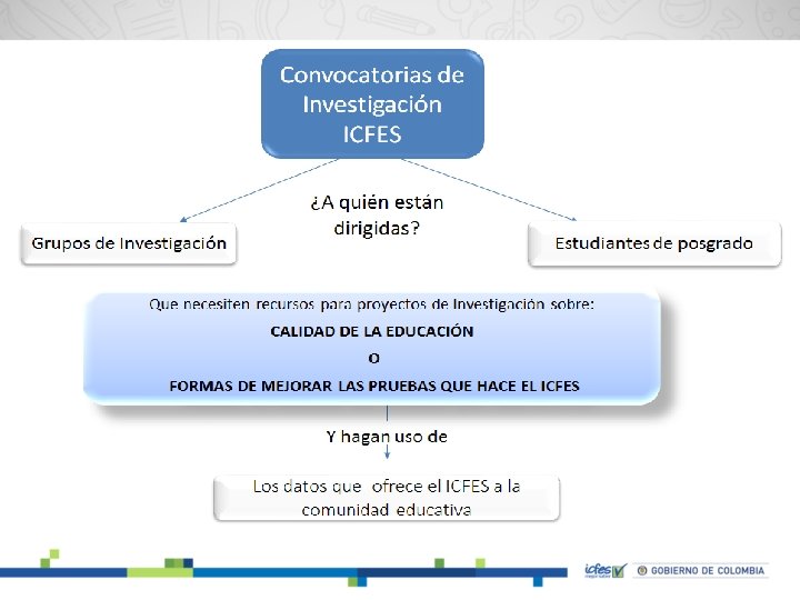 Para mayor información sobre las convocatorias del Icfes puede escribir a los correos: → convocatoriagrupos@icfes. gov. co → convocatoriaestudiantes@icfes. gov. co O consultar la página del Icfeshttp: //www. icfes. gov. co/investigadores-yestudiantes-posgrado/convocatorias-icfes-deinvestigacion