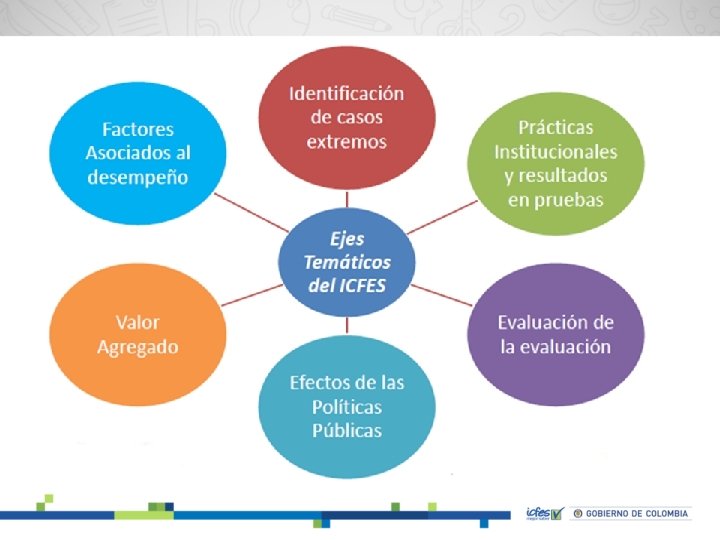 Misión del Icfes Ofrecer el servicio de evaluación de la educación en todos sus niveles y adelantar investigaciones sobre factores que inciden en la calidad educativa, con la finalidad de ofrecer información para mejorarla.