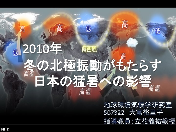 引用文献 • Ogi, M. , K. Yamazaki, and Y. Tachibana (2004), The summertime annular mode in the Northern Hemisphere and its linkage to the winter mode, J. Geophys. Res, 109, D 20114, doi: 10. 1029/2004 JD 004514. • Tachibana, Y. , T. Nakamura, H. Komiya, and M. Takahashi (2010), Abrupt evolution of the summer Northern Hemisphere annular mode and its association with blocking, J. Geophys. Res. , 115, D 12125, doi: 10. 1029/2009 JD 012894. • Tanimoto, Y. , and S. -P. Xie (2002), Inter-hemispheric Decadal Variation in SST, Surface Wind, Heat Flux and Cloud Cover the Atlantic Ocean, J. Meteor. Soc. Japan, 80, 1199 -1219 • Wang, L. and W. Chen (2009), Downward Arctic Oscillation signal associated with moderate weak stratospheric polar vortex and the cold December 2009, Geophysical Research Letters, 37, L 09707, doi: 10. 1029/2010 GL 042659. • 気象庁ホームページ (http: //www. jma. go. jp/jma/press/1009/01 c/tenko 100608. html) 18