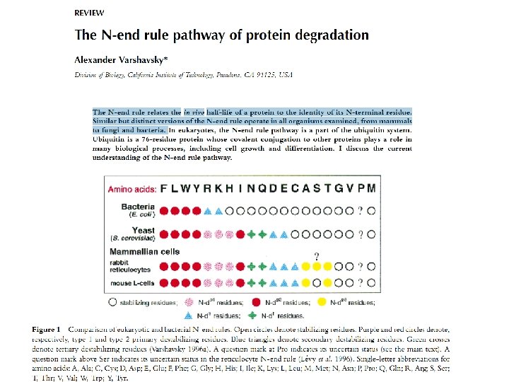 ü ALTRE ANALISI DI SEQUENZA Presenza di codoni rari http: //nihserver. mbi. ucla. edu/RACC N-end rule (Varshavsky, A. (1996) Proc. Natl. Acad. Sci. USA 93, 12142 -1214)