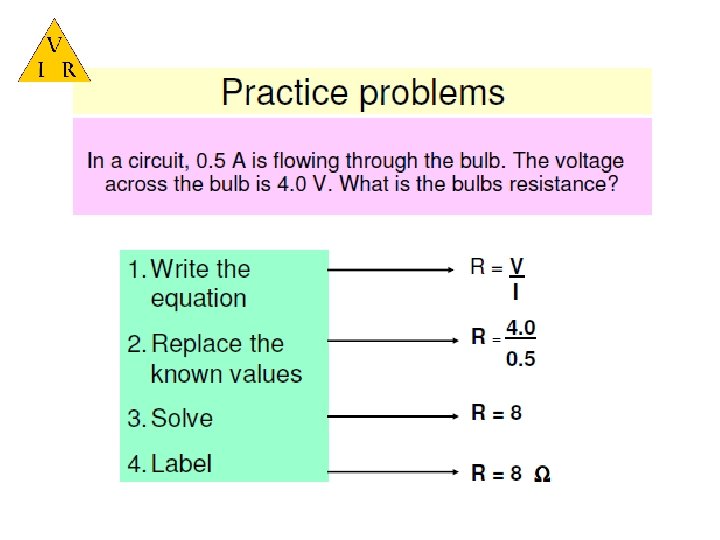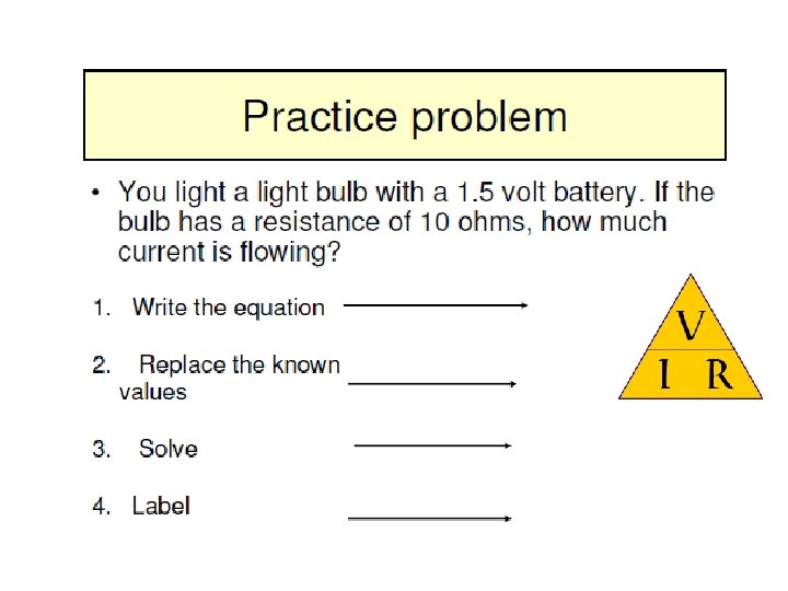 calculate the amount of voltage supplied by a battery, given values of current (I) and resistance (R):