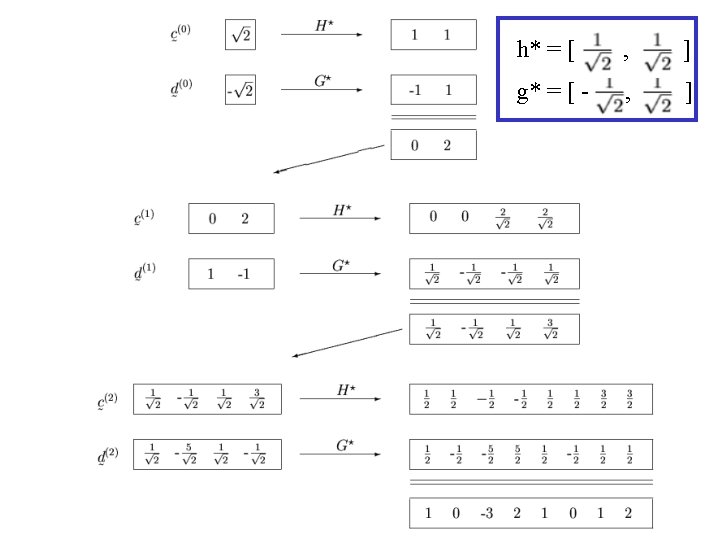 Haar waveleta h=[ , ] g=[ , - ]