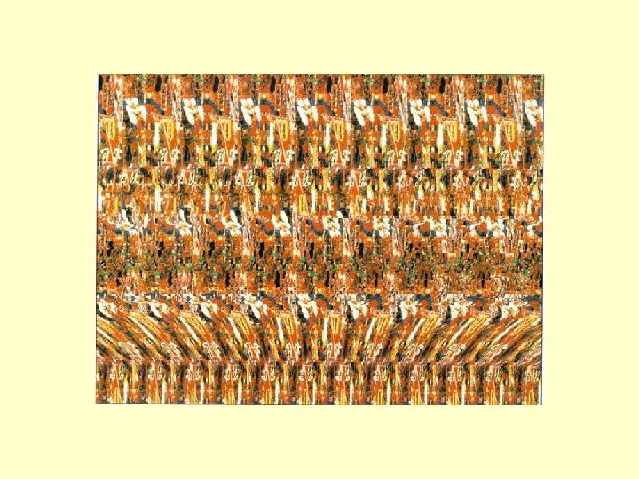 A teď několik 3 D obrázků. Říká se jim stereogramy a při určitém způsobu pohledu je vnímáme jako trojrozměrné. Přibliž zrak co možná nejblíž monitoru, zkus rozostřit a pomalu zrak oddaluj od monitoru. V určitém okamžiku uvidíš zajímavé tvary.