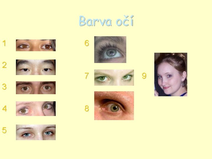 Barva očí 1 6 2 7 3 4 5 8 9