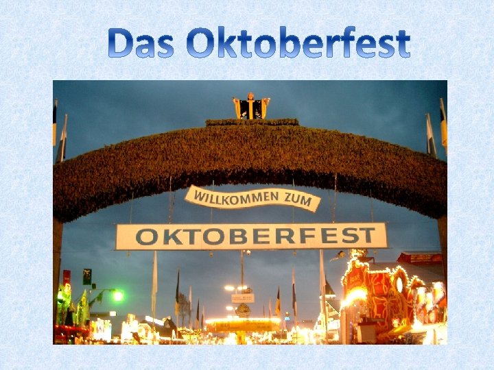 Oktoberfest ist der beliebteste Urlaub der Welt. Dies ist ein Feiertag, der jährlich auf der Theresienwiese in München, Deutschland, im Jahre 1810 stattfindet. Im 21. Jahrhundert erreichte und erreichte seine Anwesenheit 6 Millionen Menschen. Für den Urlaub machen die Münchner Brauereien ein besonderes Bier (Wiesn Märzen) mit einem höheren Alkoholgehalt. Unterhaltung beinhaltet Vergnügungszüge, Riesenrad, Karussell und vieles mehr.