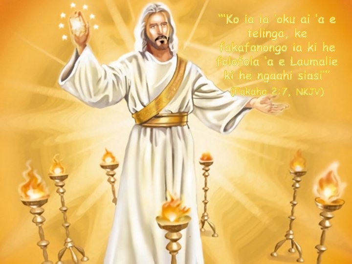 ’Oku monu’ia ia ‘oku ne lau, mo kinautolu ‘oku fanongo ki he ngaahi lea ‘o e kikite ni, mo fai ‘a ee ngaahi me’a ‘oku tohi: ai: he ‘oku ofi ‘a e kuonga” (Fakaha 1: 3) NKJV)