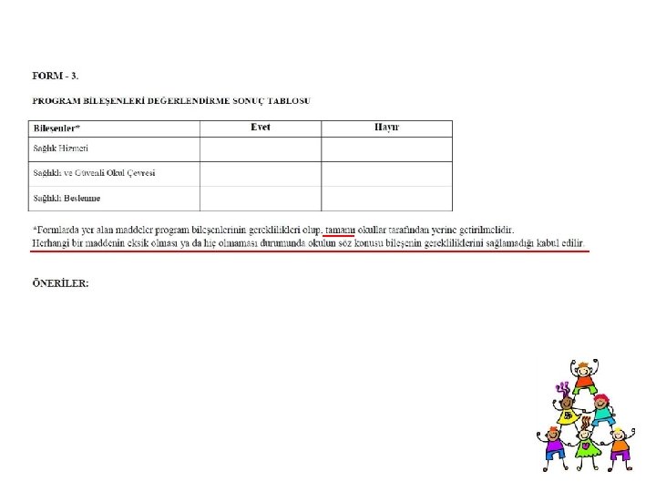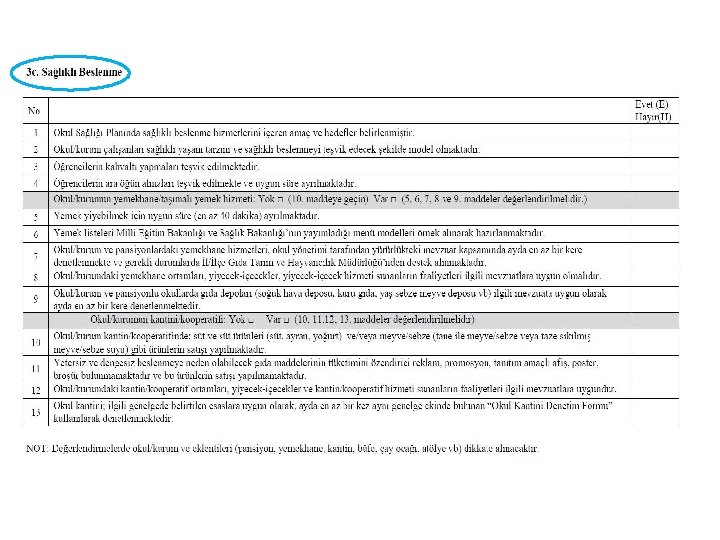 Program Bileşenleri Değerlendirme Formları Sağlık Hizmetleri Sağlıklı ve Güvenli Çevre Sağlıklı Beslenme
