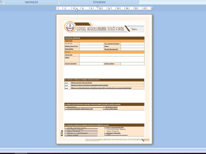 Okullardan Gelecek Evraklar Nelerdir? EĞİTSEL TANILAMA DEĞERLENDİRME İSTEĞİ EĞİTSEL DEĞERLENDİRME İSTEK FORMU Eğitsel Değerlendirme İsteği Formunun Hazırlanması Öğrencilerin sınıfı dahil tüm bilgilerinin eksiksiz bir şekilde doldurulması gerekmektedir. Eğitsel değerlendirme formunda sınıf öğretmeni, varsa okul psikolojik danışmanı ve velisinin görüşü mutlaka yazılmalı ve imzalandırılmalıdır. Okul müdürü imza ve mührü mutlaka eksiksiz olmalıdır.