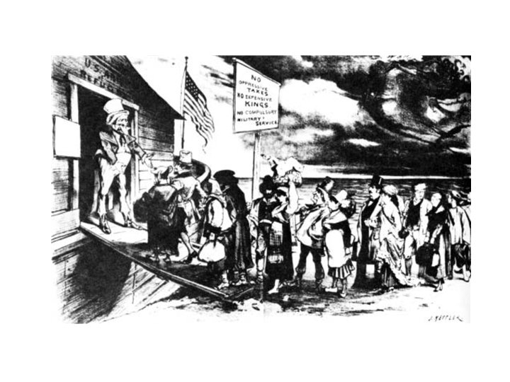 Pull Factors • Factors that drew immigrants from their native country to the United States. • They included religious and political freedom, the promise of economic betterment and the desire to obtain an education.