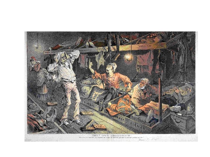 Nativism • • • An intense hatred of immigrants. Examples: Know Nothing Party (1850’s): directed nativism at Irish immigrants Yellow Peril: fear that Asian immigrants are going to take over the U. S. Chinese Exclusion Act (1887): prohibited Chinese immigration to the U. S. Gentleman’s Agreement: (1907) prohibited Japanese immigration to the U. S. Quota Laws: Restrictive Immigration Laws of the 1920’s severely limited the number of new immigrants coming to the U. S. from Southeastern Europe and Asia Sacco and Vanzetti (1921): Italian immigrants who were executed due to Nativist pressures Red Scare (1920’s): nativism directed against suspected communists Palmer Raids (1921): Raids on the homes of suspected communists. Many were deported without due process. Go home!