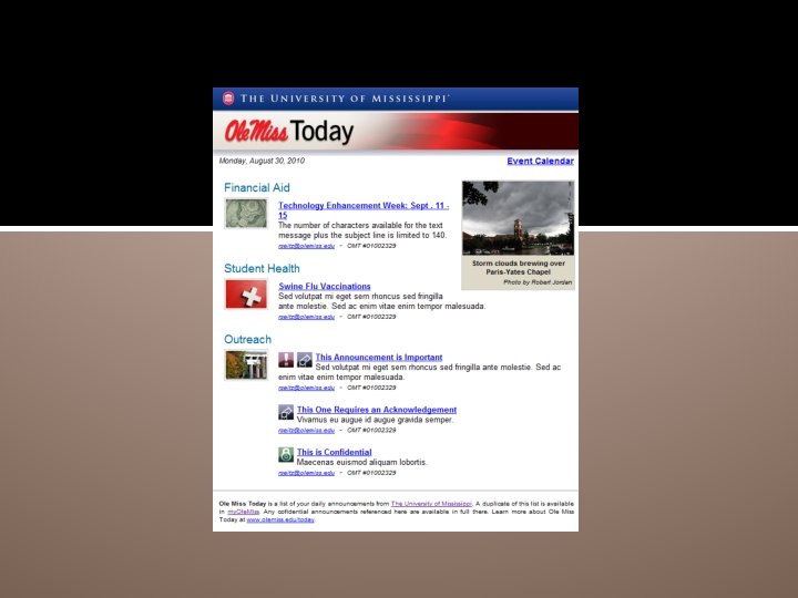 Ole Miss Today an integrated, campus-wide announcement system