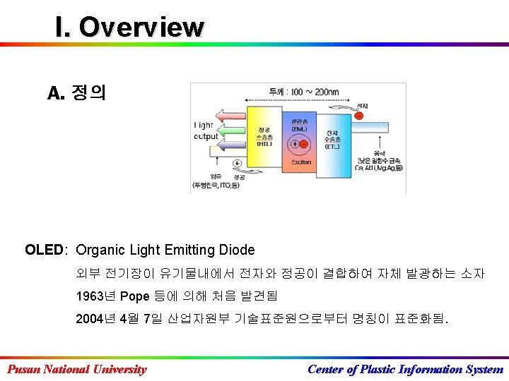 OLED (Organic Light Emitting Diode) Pusan National University Center of Plastic Information System