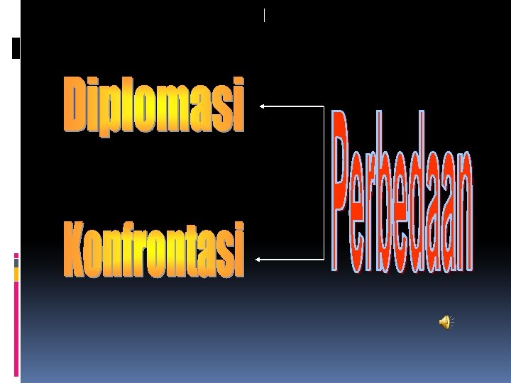 Perbedaan Strategi Diplomasi dan Konfrontasi o Strategi Diplomasi adalah strategi dengan jalan mengadakan perundingan-perundingan. Strategi ini dilakukan karena Indonesia masih dalam posisi yang lemah dalam menghadapi Sekutu. o Strategi Konfrontasi adalah strategi dengan jalan mengangkat senjata atau perang. Para pendukung konfrontasi berpendapat bahwa semangat di kalangan rakyat dan pejuang cukup kuat untuk melawan kekuatan asing.