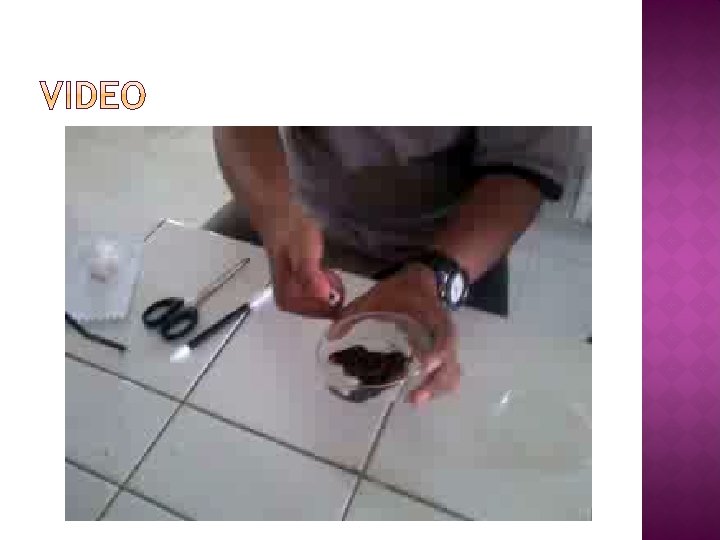 1. 2. 3. 4. 5. 6. 7. 8. Cawan petri Sendok plastik Kantong plastik putih Pipet tetes Alat penumbuk Kain putih Pisau Spidol ALAT 1. 2. 3. 4. 5. Bakso (pentol) Sosis Tahu Putih Kunyit Air BAHAN